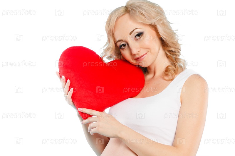 Беременная женщина с плюшевым сердцем