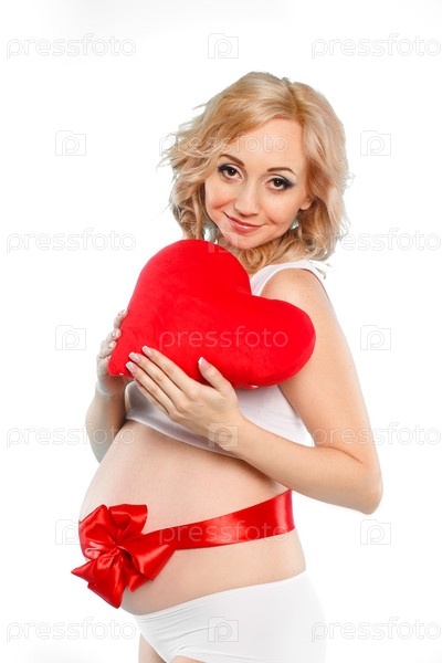 Беременная женщина с плюшевым сердцем