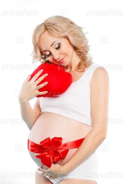 Беременная женщина с плюшевым сердцем