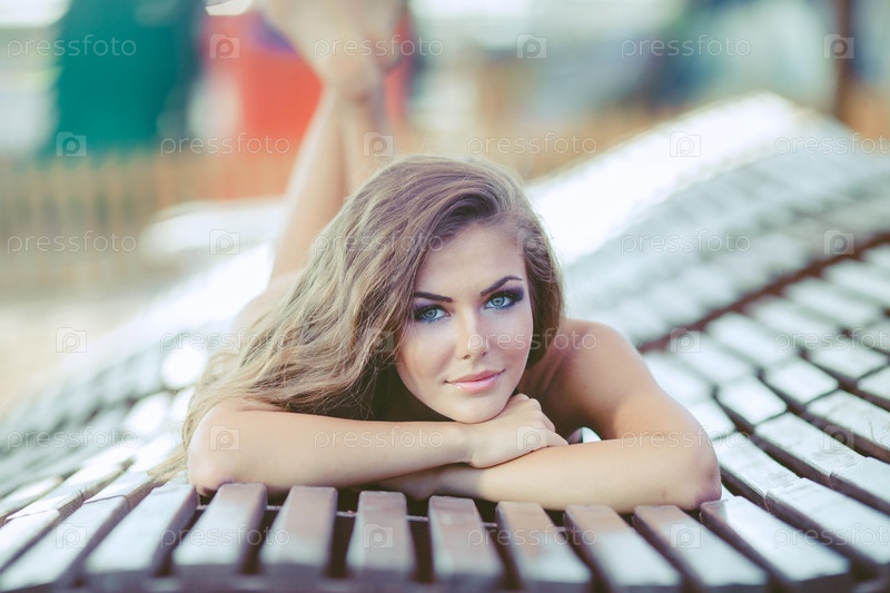 Голубоглазая модель загорать в тени