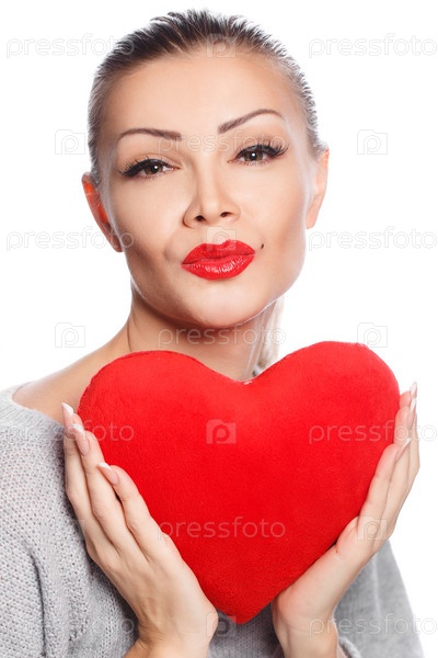 Портрет красивой женщины с плюшевым сердцем