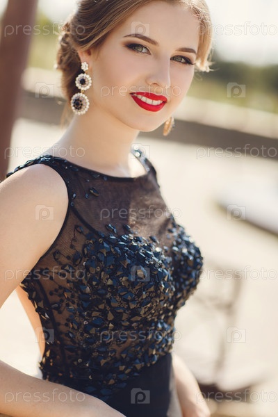 Модель в черном платье вечернее