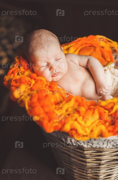 Ребенок в плетеной корзине