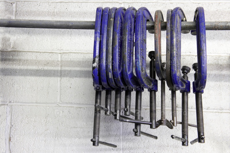Зажимы, висит на стене на фабричном этаже