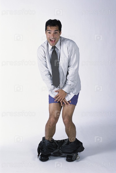 Молодой бизнесмен со спущенными штанами