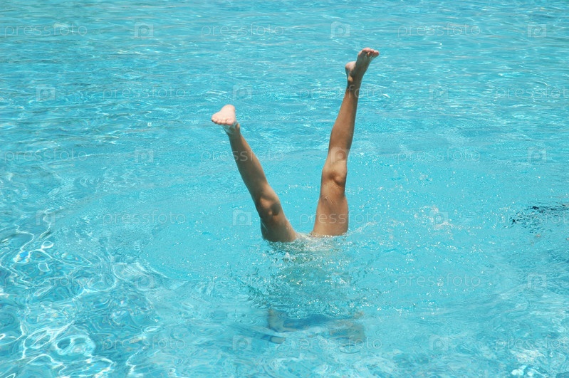 Человек стоял вверх ногами в бассейне