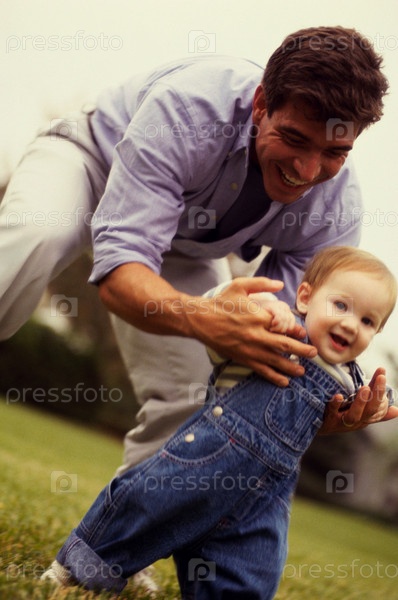 Отец помогает ребенка ходить