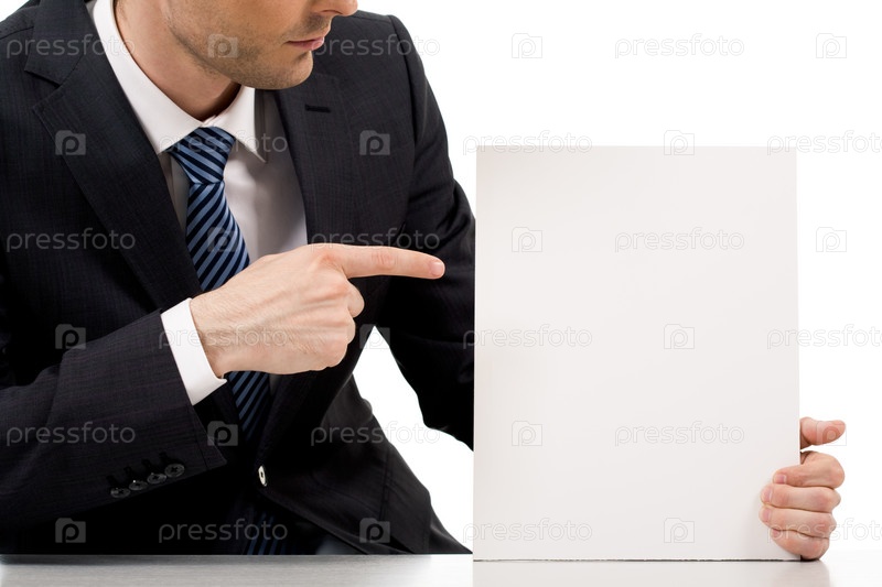 Изображение человеческой руки, указывающей на пустую бумагу во время рекламы чего-то