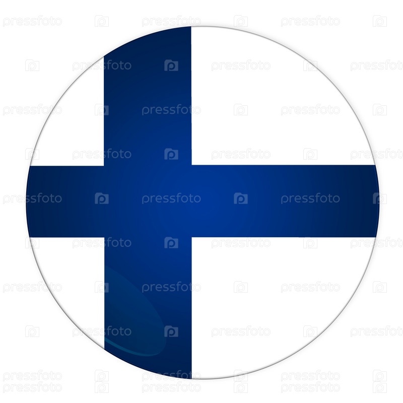 Кнопка с изображением флага Финляндии. Иллюстрация, изолированная на белом фоне