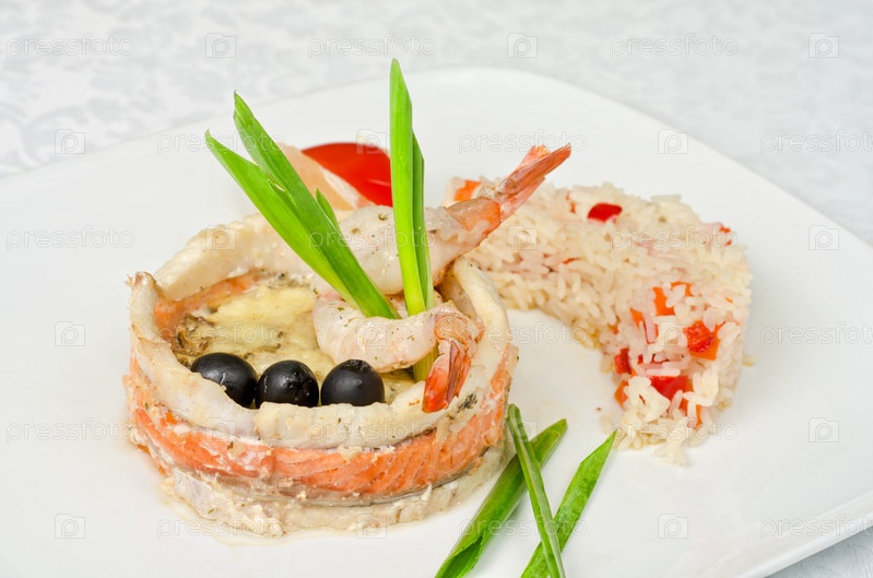 Лосось с рисом и овощами