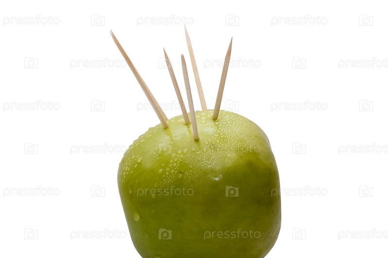 Зеленое яблока с шипами на белом фоне