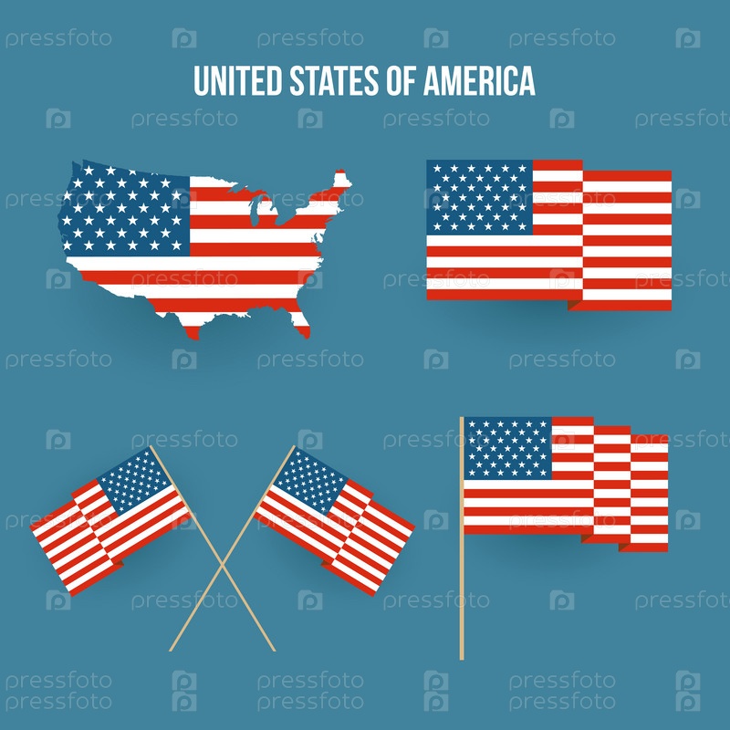 Набор американский флаг и карта. Плоский дизайн