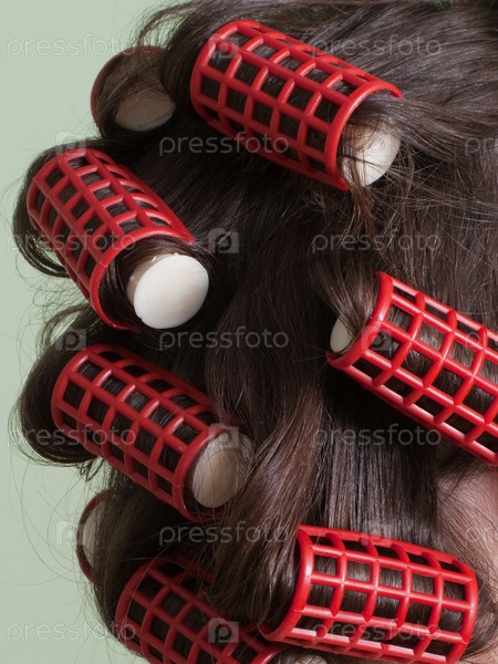 Бигуди на голове девушки для красивой прически