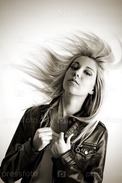 Портрет девушки со светлыми развевающимися волосами