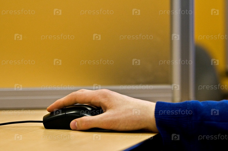 Руку на компьютерной мыши
