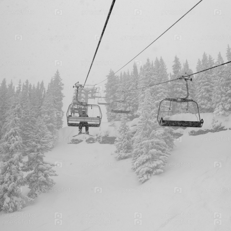 Кресельная канатная дорога на лыжном склоне