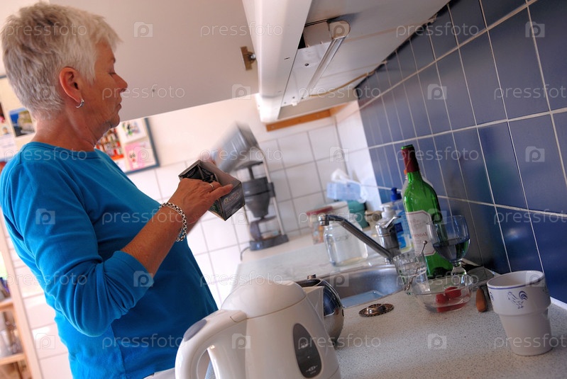 Пожилая женщина в кухня