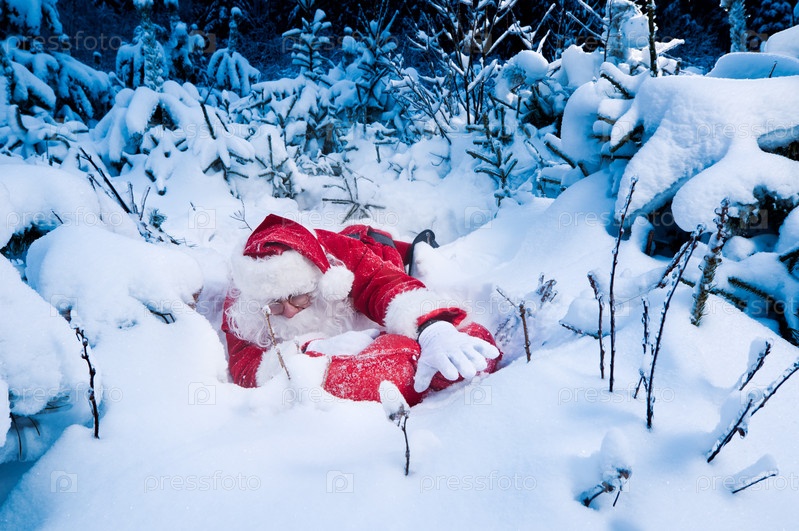 Санта Клаус застрял в лесу в сугробе