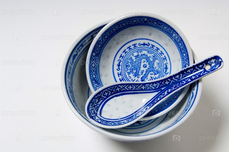 Азиатских миски и ложкой