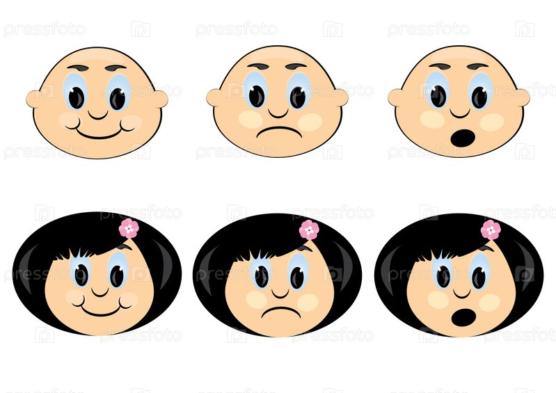 Эмоции детей. Иллюстрация на белом