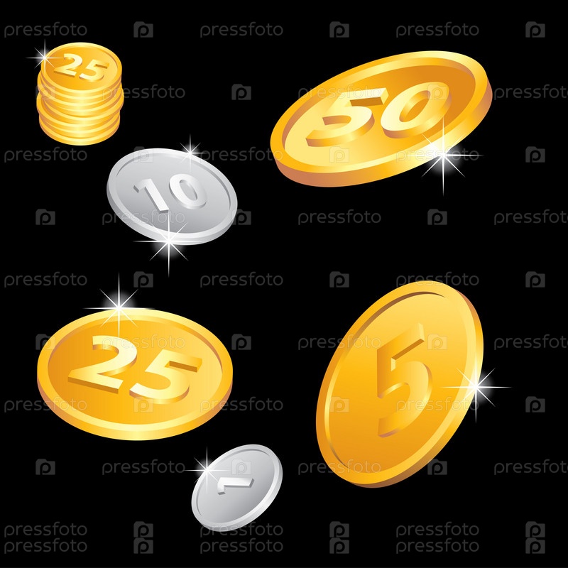 Золотые и серебряные монеты на черном
