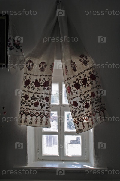 Окна украшены украинскими полотенцами