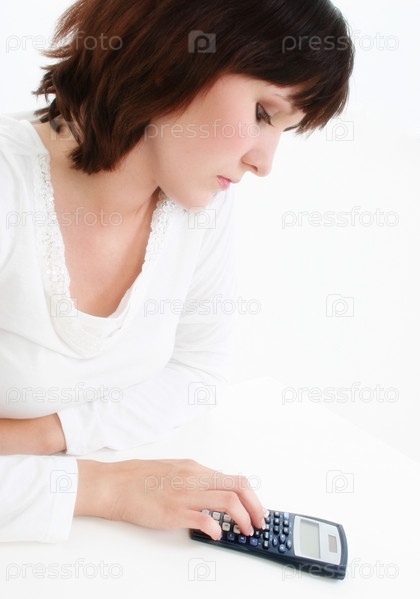 Молодая женщина с калькулятора