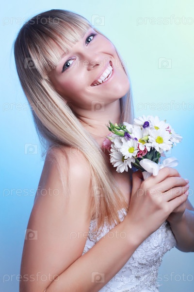 Красивая невеста с букетом из ромашек