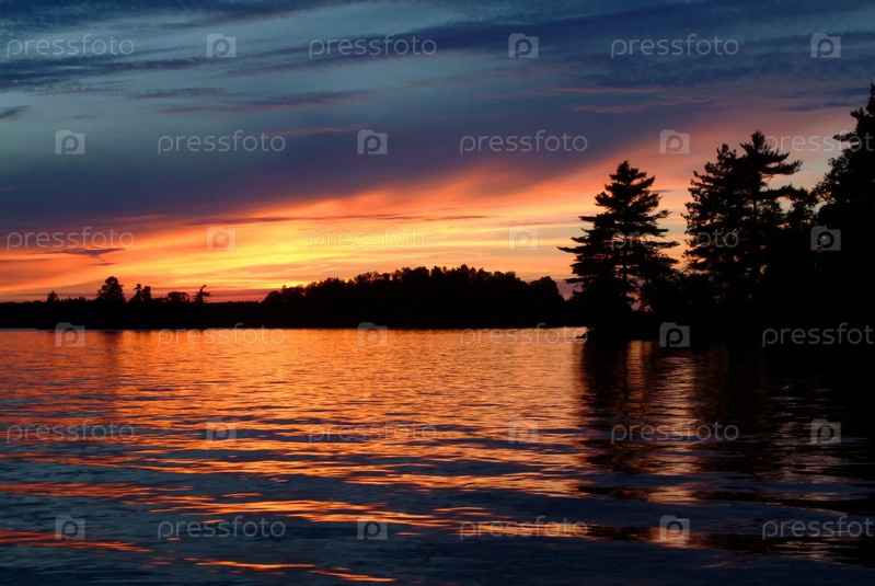 Оранжевый закат на берегу озера