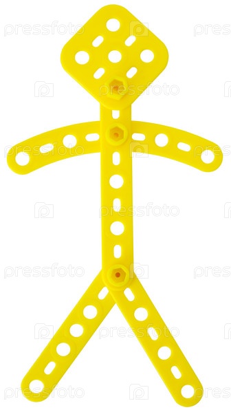 Маленький человек собран из пластиковых деталей конструктора