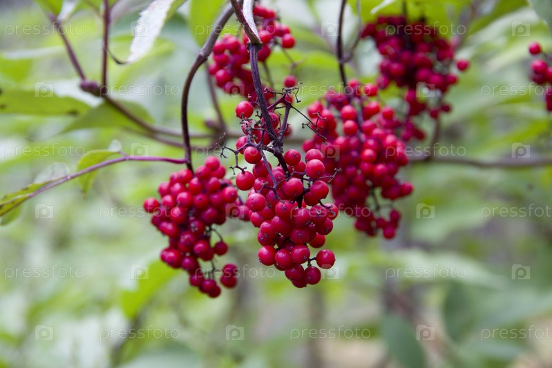 Красные ягоды бузины на ветке