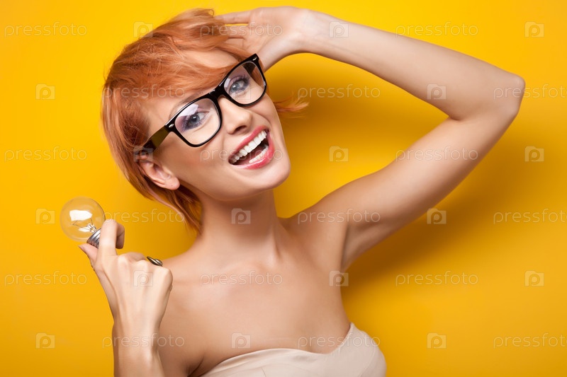 Женщина позирует с лампочкой