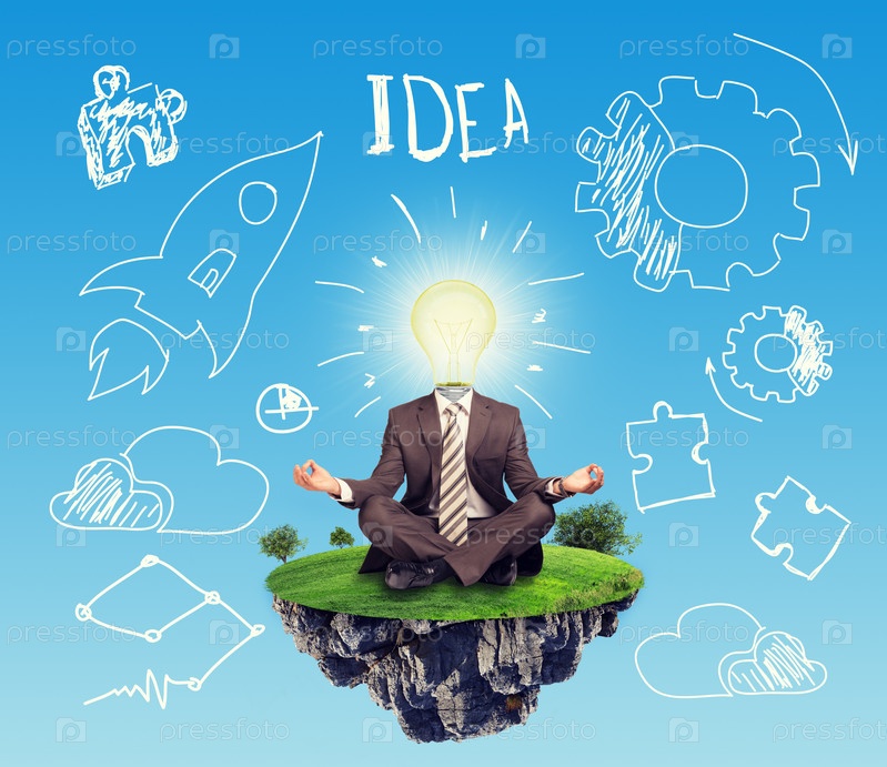 Бизнесмен сидя в позе лотоса