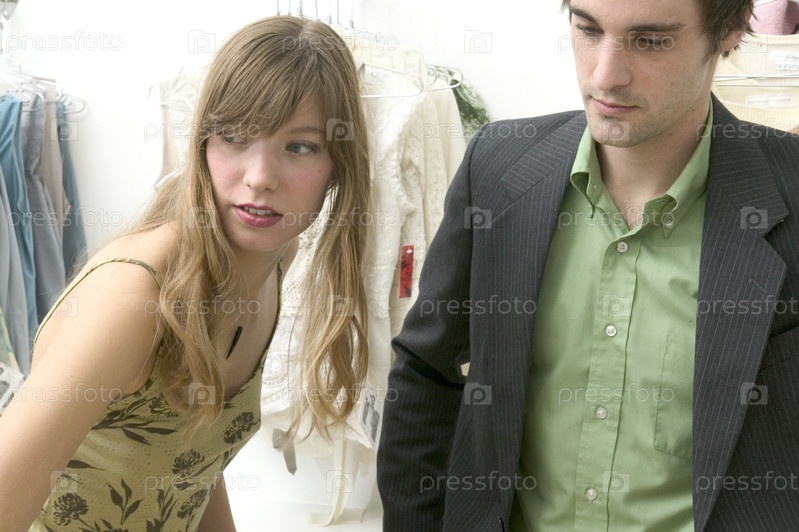 Молодая пара в магазине одежды