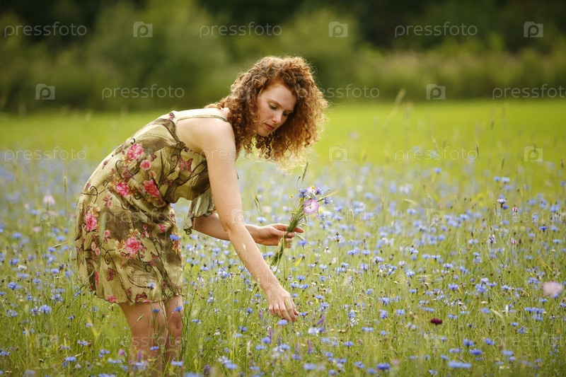 Красивая женщина, собирать цветы
