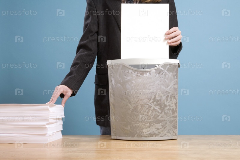 Человек измельает документы