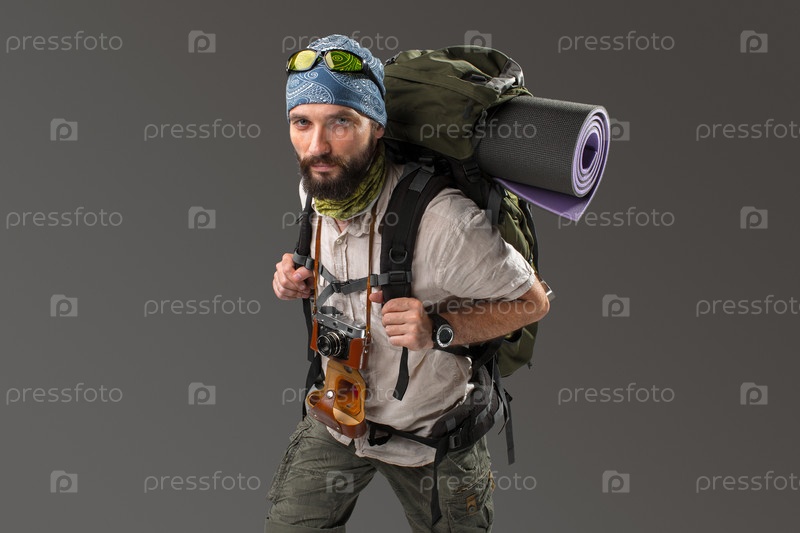 Портрет мужчины полностью оборудованная туристическая