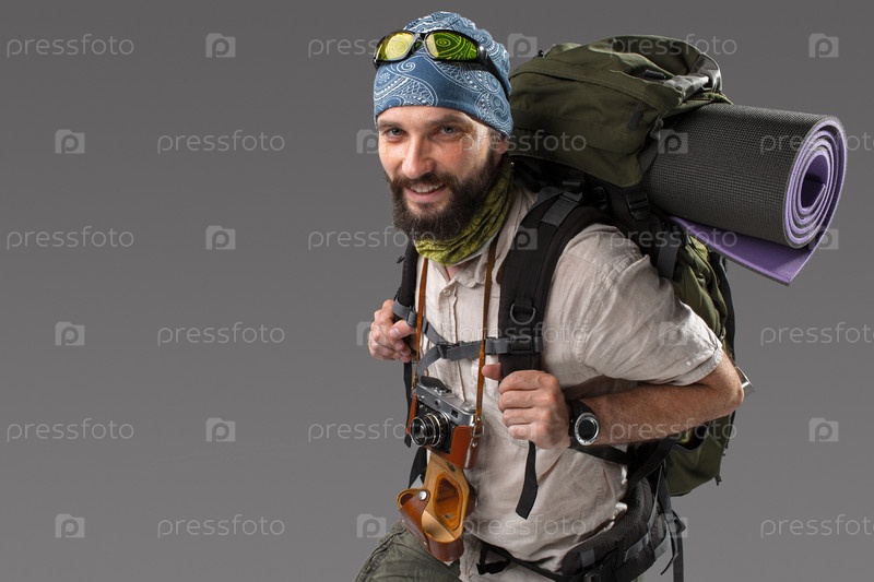 Портрет мужчины полностью оборудованная туристическая