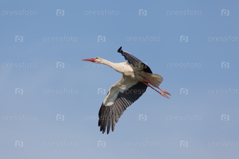 Белый аист летит в небе