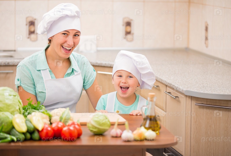 Мать с ее ребенка поваров