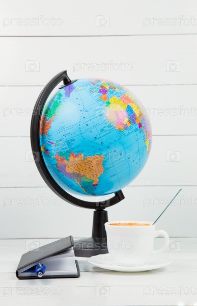 Глобус кофе и ноутбука