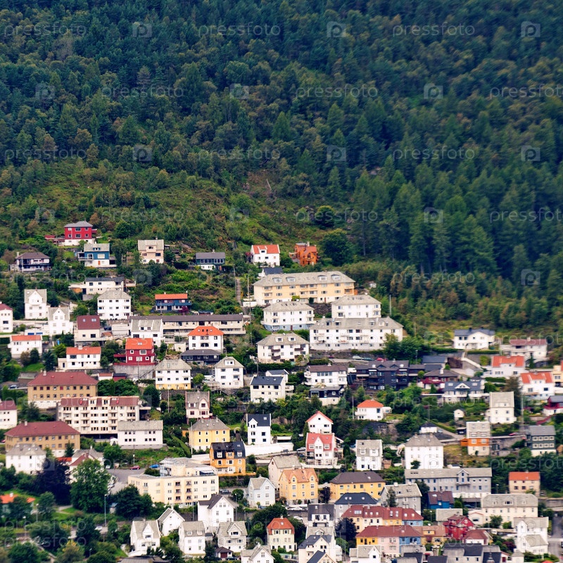 Высокий угол зрения городского пейзажа, Берген, Норвегия