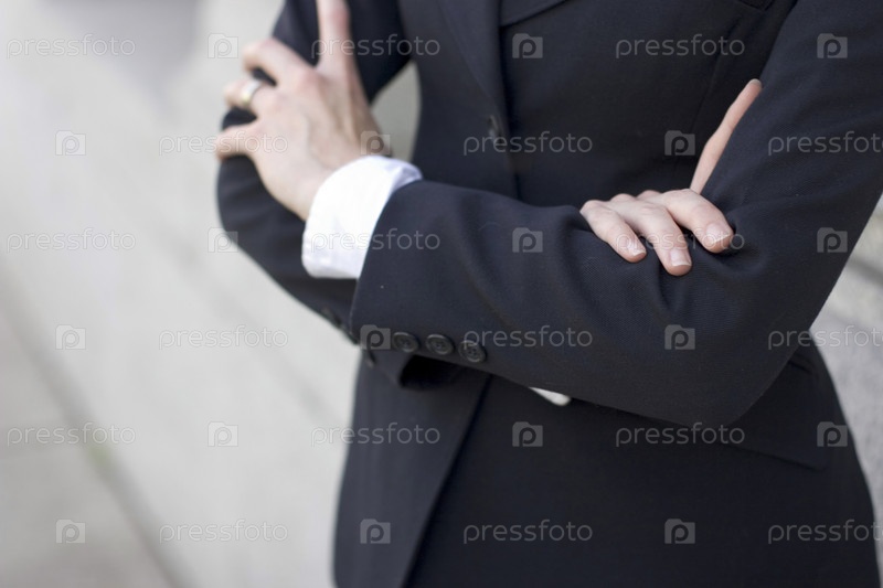 Предприниматель, стоя вне с ее руки, сложенные перед ней