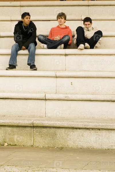 Три подростка, сидя на шагах