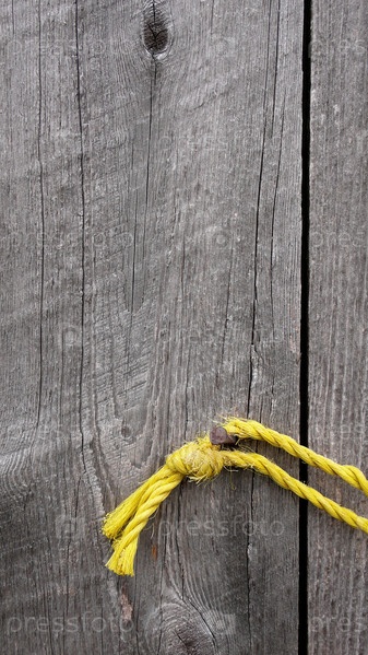 Желтая веревка на старых выветренных деревянные планки