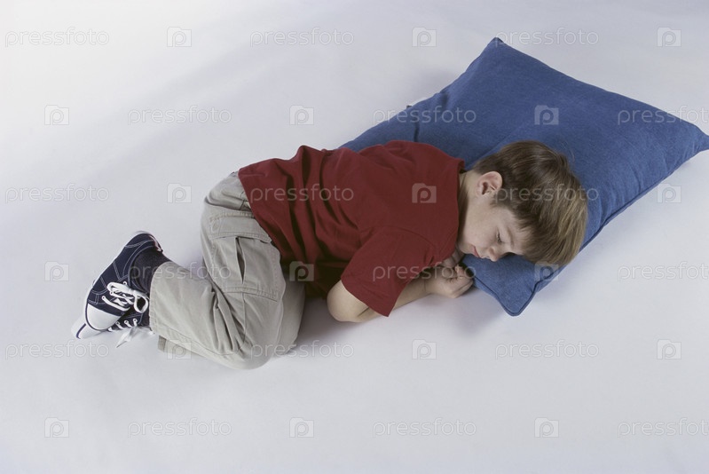 Мальчик, спать на подушке