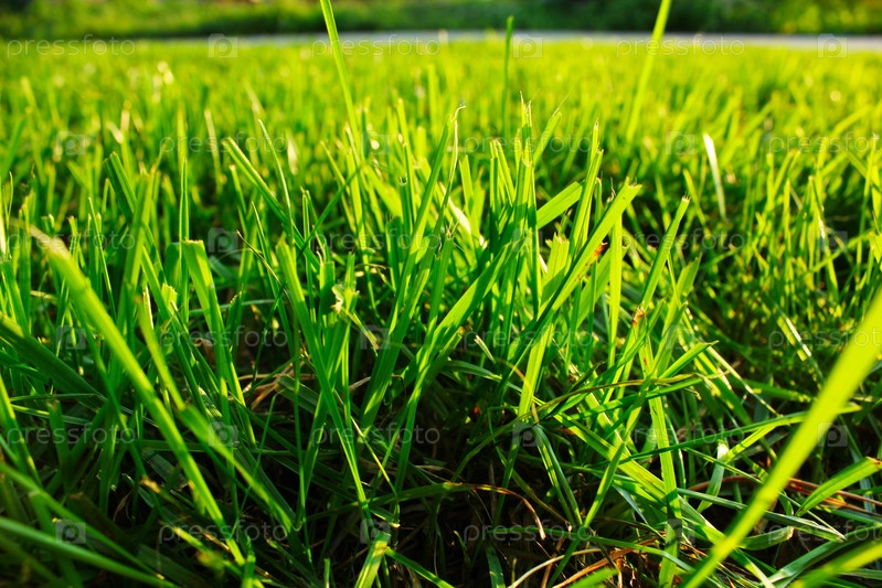 Свежий зеленый газон в летний день
