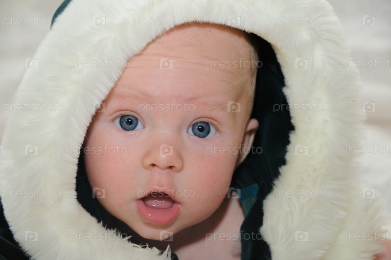 Ребенок в пушистом капюшоне