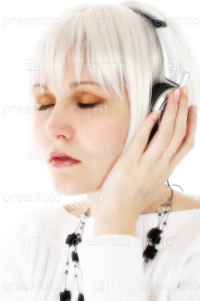 Крупным планом молодой женщины, слушать музыку