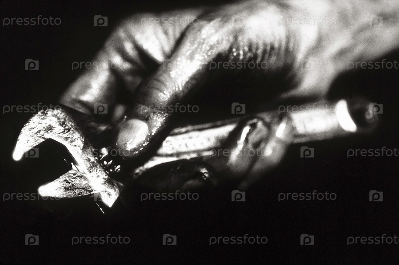 Механик, держа гаечный ключ